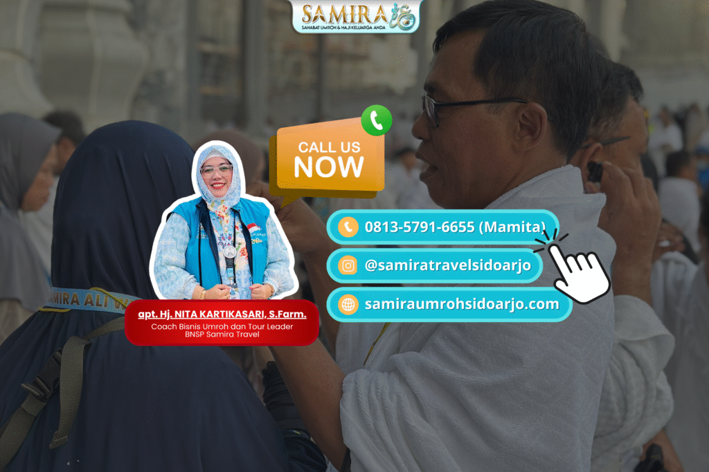 Segera hubungi Mamita di 0813-5791-6655 (WA) dan rencanakan perjalanan ibadah Anda bersama Samira Travel Sidoarjo, teman perjalanan menuju Tanah Suci dengan pelayanan terbaik, fasilitas premium, dan pengalaman tak terlupakan.