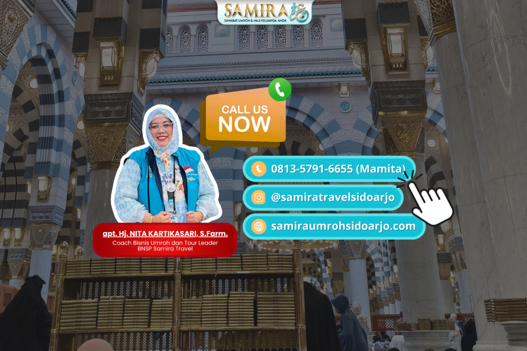 Dengan berbagai fasilitas lengkap, durasi fleksibel, dan rute keberangkatan yang mudah, Samira Travel Sidoarjo adalah pilihan yang tepat bagi Anda yang ingin menjalankan ibadah umroh, haji, dan wisata halal dengan nyaman dan aman.